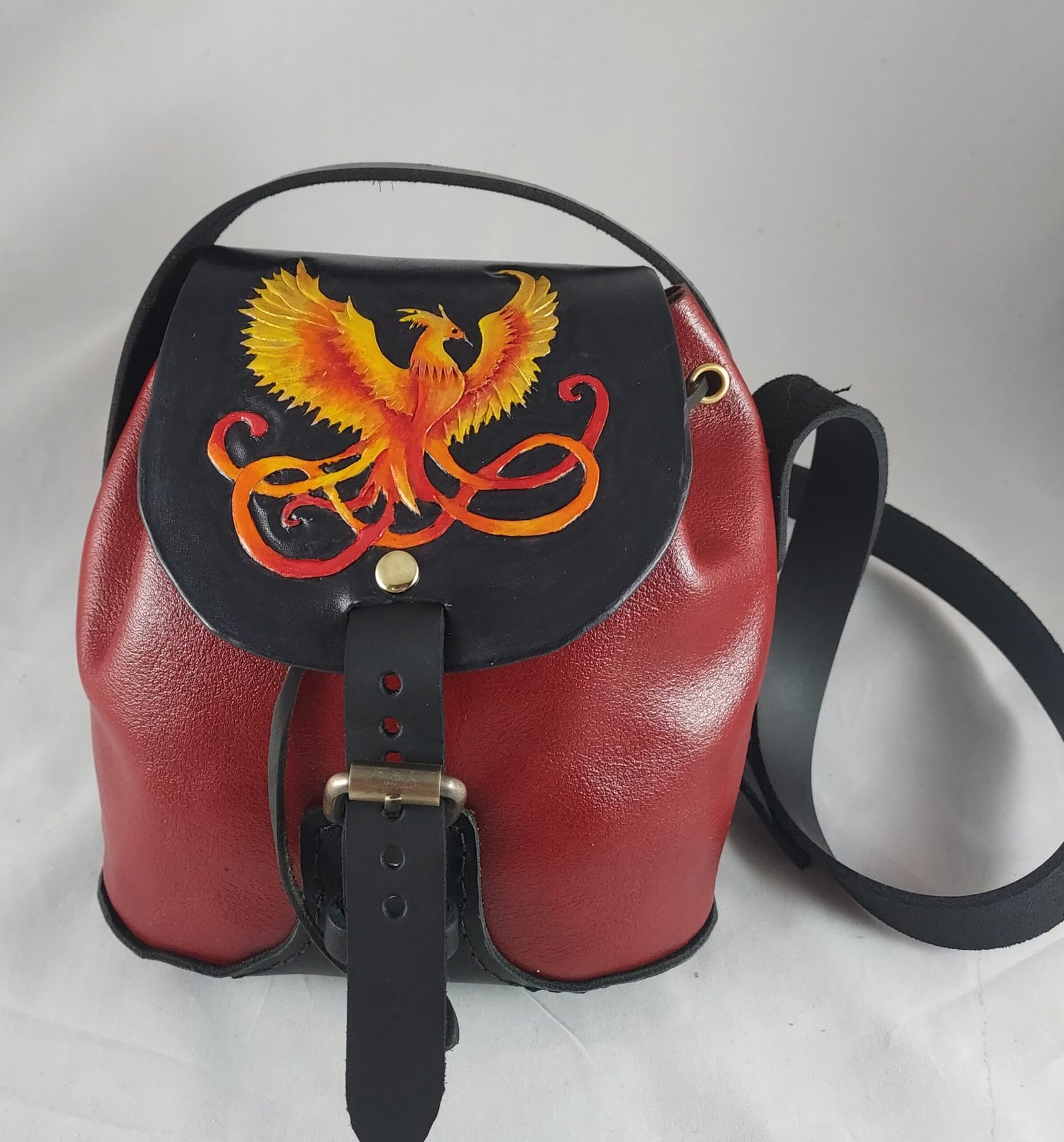 Embrace the fire with our hand tooled, hand stitched, and hand painted leather handbag. This one-of-a-kind piece features an intricately hand tooled phoenix rising from the ashes. It’s more than a handbag—it’s a statement of timeless style and unmatched craftsmanship, perfect for elevating your everyday ensemble.