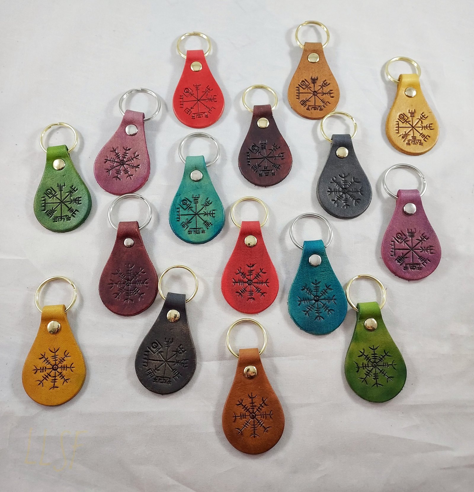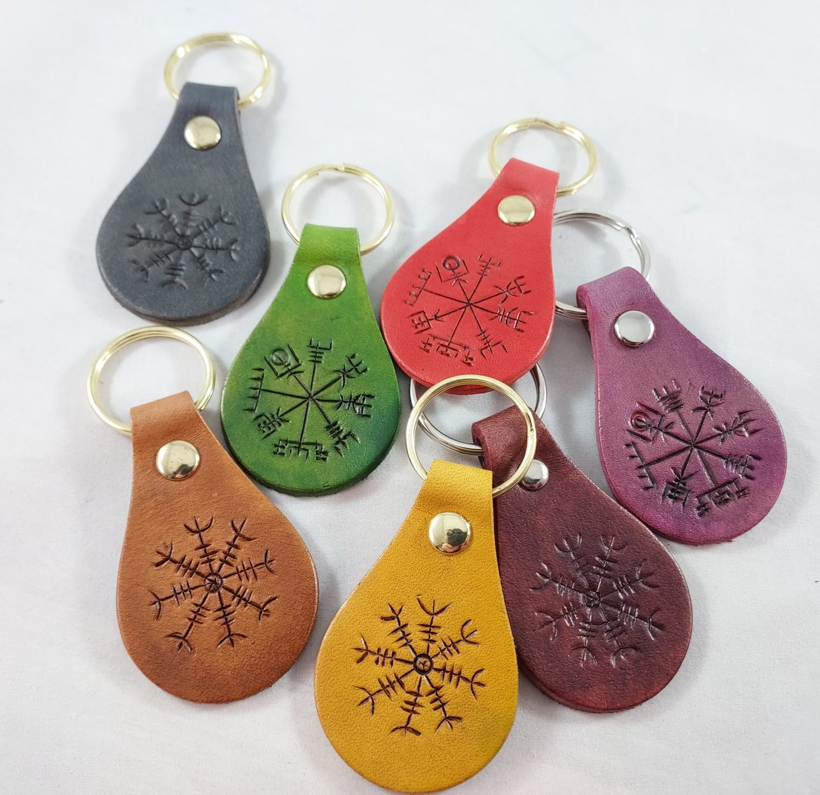 Our hand cut, hand tooled, and hand dyed leather key fob embodies the perfect balance between artistry and functionality. Designed with precision, this key fob features ancient Icelandic symbols such as the Vegvisir (a Norse compass) or the Helm of Awe (a symbol of protection), making it both meaningful and stylish. Each piece is crafted with care, ensuring that it isn’t just a key fob—it’s a piece of history and tradition you can carry with you daily.
