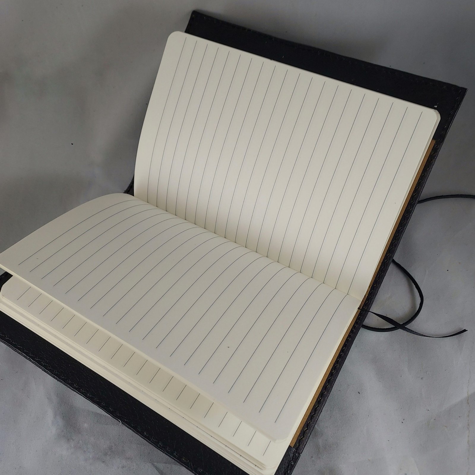 Designed in A5 size, this journal offers versatility with a refillable format. It comes complete with a 260-page acid-free refillable journal blank, featuring heavy stock paper for durability and smooth writing. The pages are lined, making it perfect for journaling, planning, or sketching, accompanied by a built-in black ribbon bookmark for added convenience. Experience the sophistication of a journal that blends aesthetic appeal with practical utility.